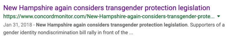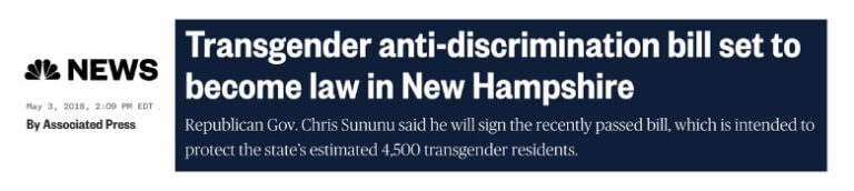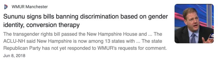 CrossCurrent Communications was hired to provide PR and media relations for a statewide initiative to add gender identity to NH’s nondiscrimination law. An intensive multi-year campaign was ultimately successful as the bill passed the Republican controlled NH Legislature and was signed by Republican Governor Chris Sununu.