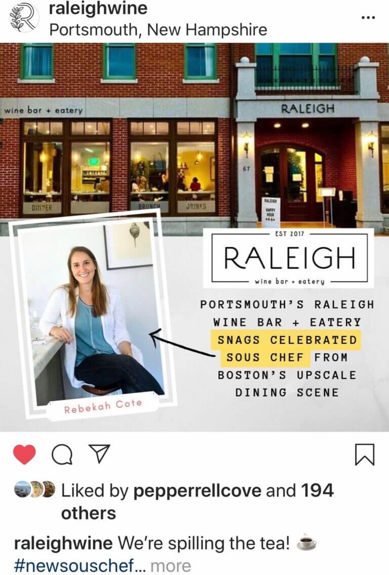 CrossCurrent Communications was called upon to build awareness for a new restaurant in downtown Portsmouth. We provided social media training and PR services for Raleigh Wine Bar. Our marketing and outreach efforts resulted in significant buzz about a contemporary, fresh restaurant that specializes in natural wines and creative cuisine.